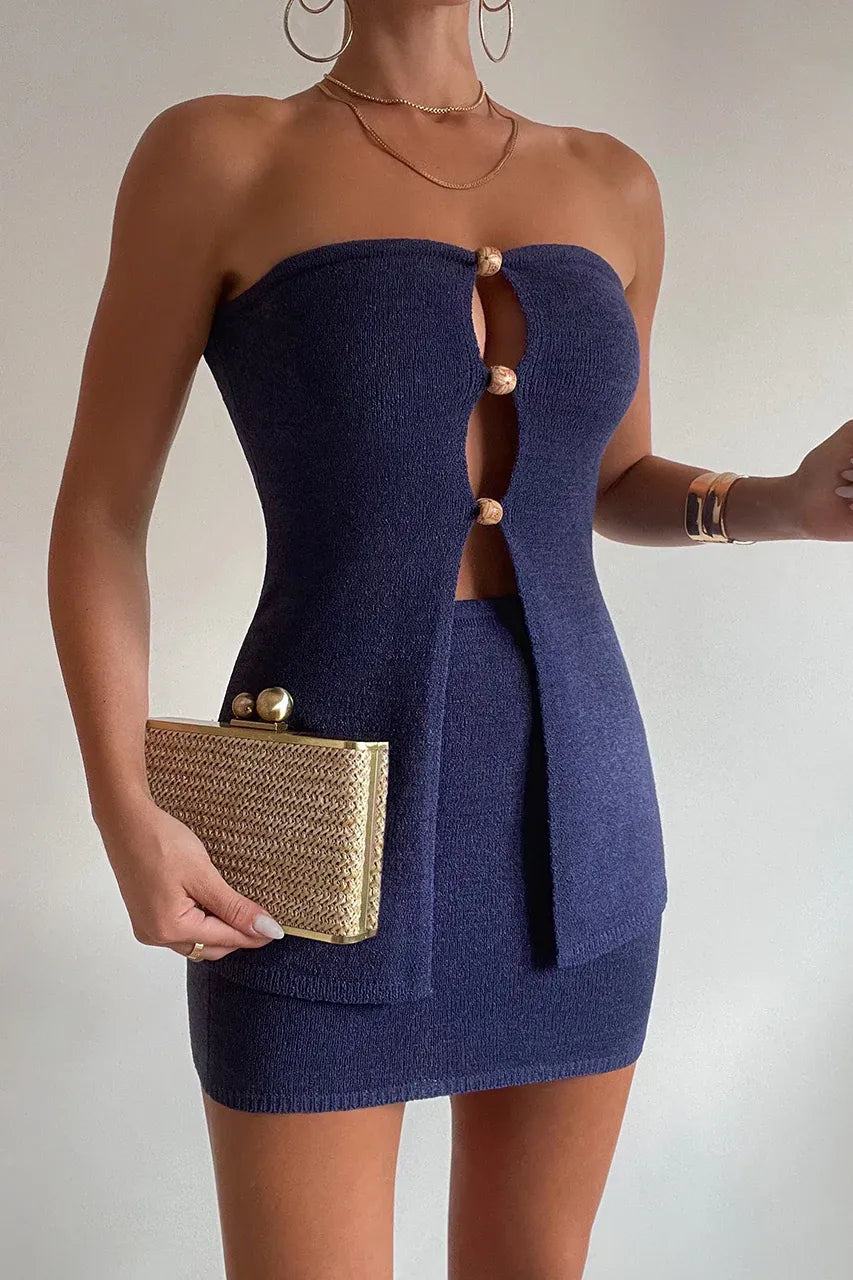 Crafted from a luxe knit, with beaded details and cut outs, our Nellie Top is the picture for summer. Pair with our Nellie Mini Skirt for the complete look.
